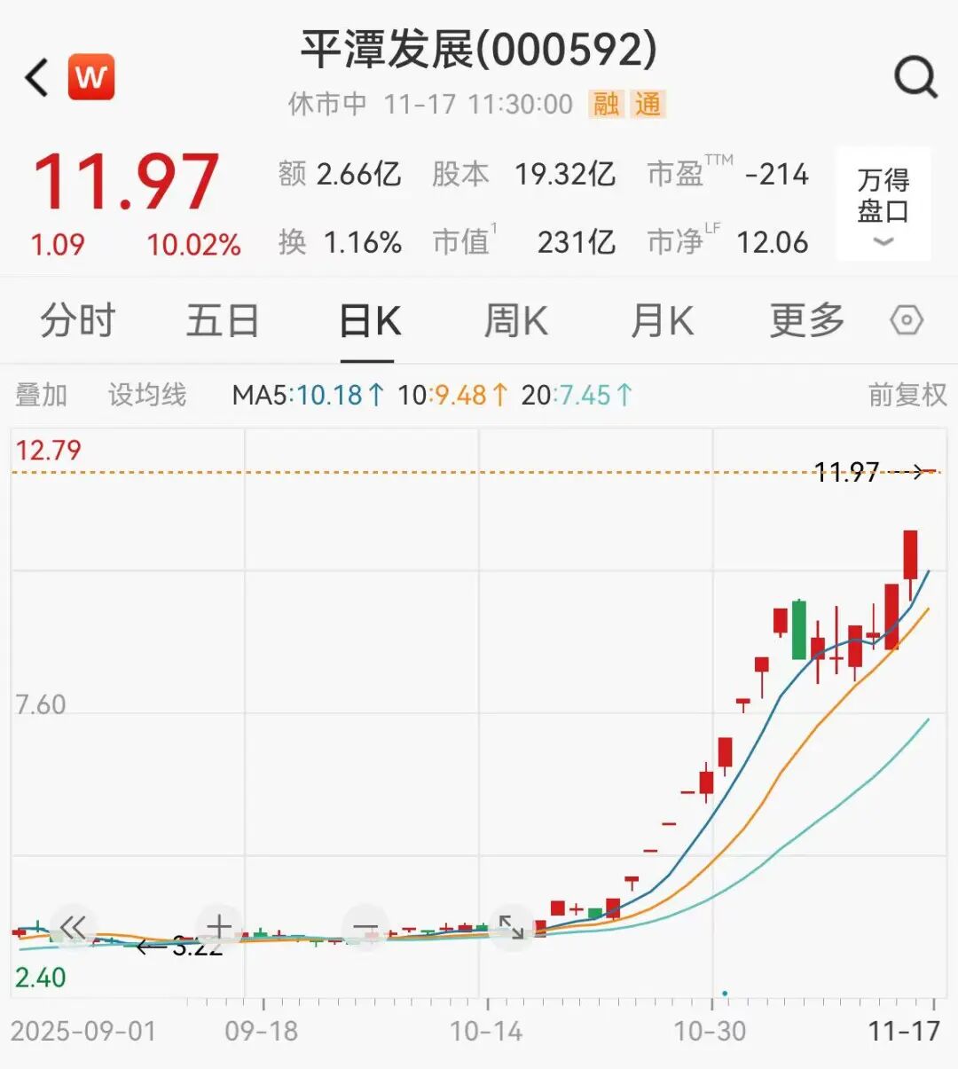 其中平潭发展走出“21天13板”的强势行情,自10月17日启动上涨以来,该股股价累计涨幅达255.19%,总市值从65亿元飙升至231亿元,成为近期A股市场最受关注的异动个股。