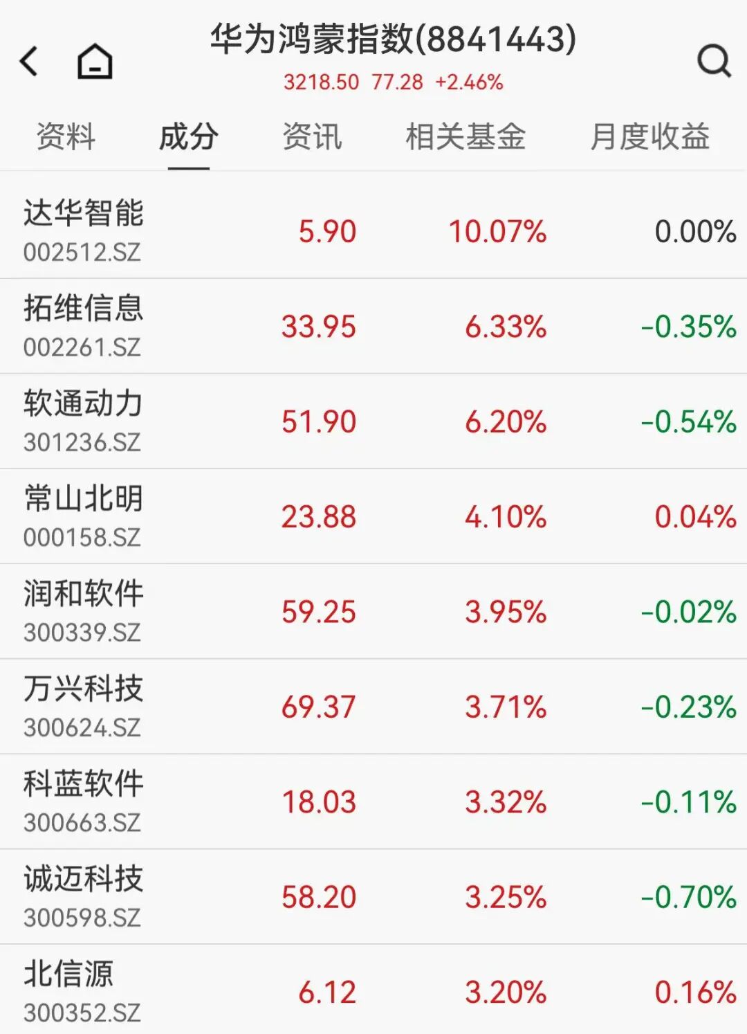 华为鸿蒙概念异动拉升,达华智能涨停,多股涨超3%。