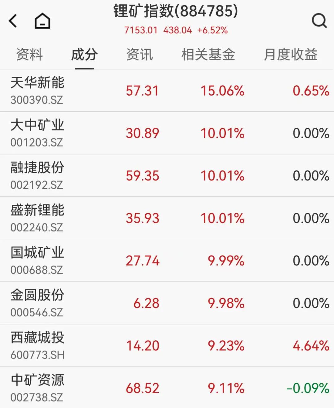 锂矿板块集体走高,大中矿业3连板,融捷股份、盛新锂能等多股涨停,天华新能涨超15%。