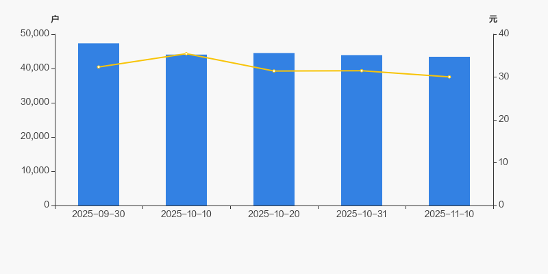 2025年9月30日至今,公司股东户数有所下降,区间跌幅为8.29%。2025年9月30日至2025年11月10日区间股价下降7.14%。