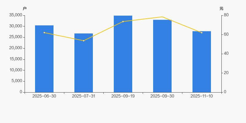 截至2025年11月10日,公司最新总股本为1.54亿股,其中流通股本为7608.11万股。户均持有流通股数量由上期的2306股上升至2738股,户均流通市值16.97万元。