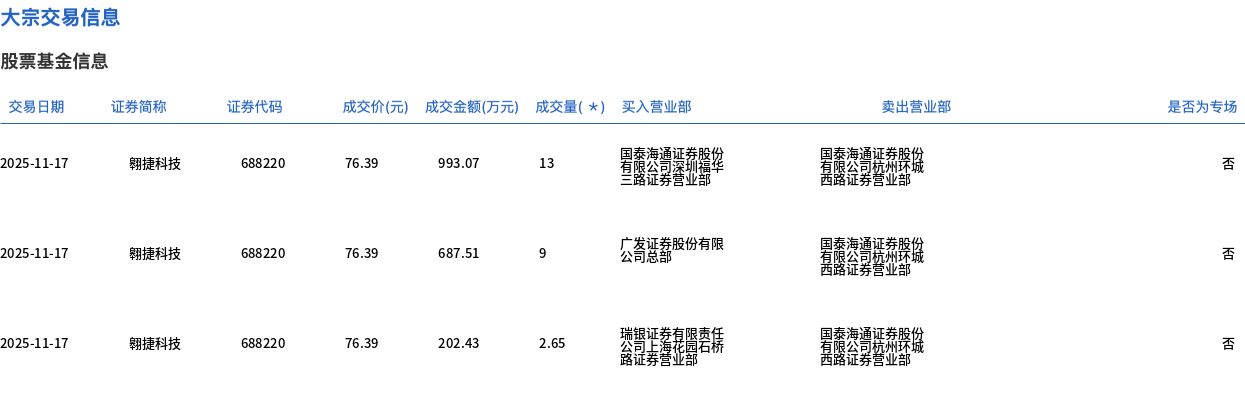 翱捷科技今日大宗交易折价成交87.65万股,成交额6695.58万元