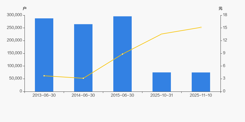 2013年6月30日至今,公司股东户数显著大幅下降,区间跌幅达73.96%。2013年6月30日至2025年11月10日区间股价上涨307.89%。