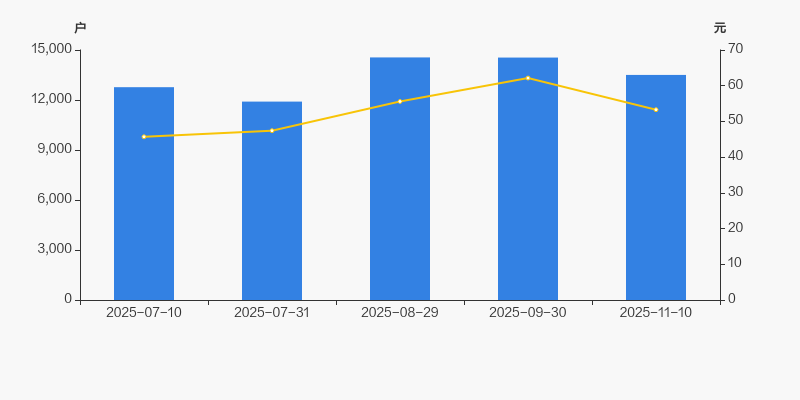 2025年7月10日至今,公司股东户数有所增长,区间涨幅为5.76%。2025年7月10日至2025年11月10日区间股价上涨16.59%。