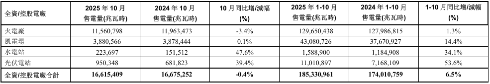 华润电力:10月售电量1662万兆瓦时 同比下降0.4%