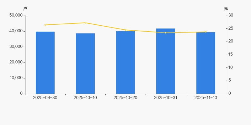 2025年9月30日至今,公司股东户数有所下降,区间跌幅为0.79%。2025年9月30日至2025年11月10日区间股价下降10.17%。