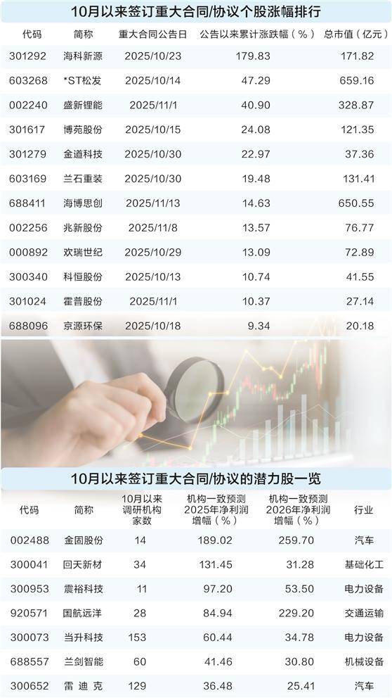证券时报·数据宝根据公告统计,四季度以来(10月份以来),A股上市公司签订战略合作协议,或签订重大合同(含经营合同)的数量接近70家。