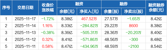 天士力:融资净买入467.52万元,融资余额8.38亿元(11-17)