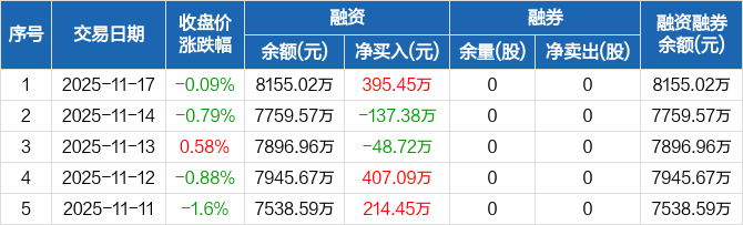 新亚电子:融资净买入395.45万元,融资余额8155.02万元(11-17)