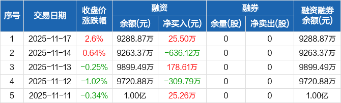 浩瀚深度:融资净买入25.5万元,融资余额9288.87万元(11-17)