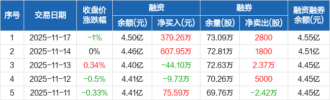 彩虹股份:融资净买入379.26万元,融资余额4.5亿元(11-17)