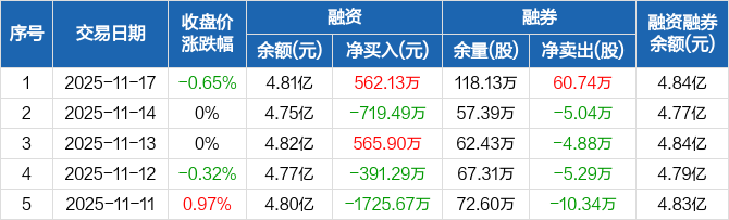 广深铁路:融资净买入562.13万元,融资余额4.81亿元(11-17)