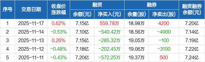 宝信软件:融资净买入559.78万元,融资余额7.15亿元(11-17)