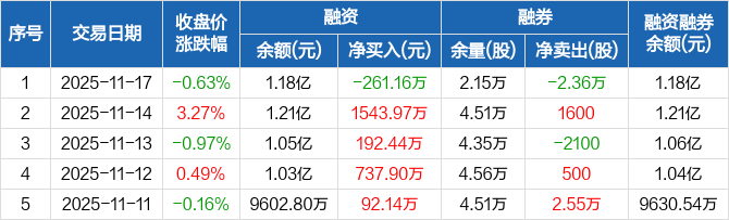 重庆燃气:融资净偿还261.16万元,融资余额1.18亿元(11-17)