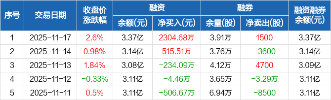 雪天盐业:融资净买入2304.68万元,融资余额3.37亿元(11-17)