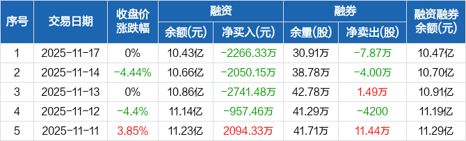 楚江新材:连续4日融资净偿还累计8015.42万元(11-17)