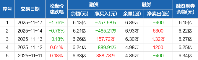 迪安诊断:融资净偿还757.98万元,融资余额6.13亿元(11-17)