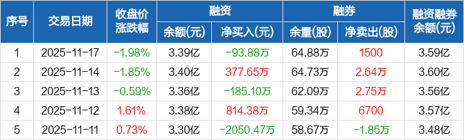 巨星科技:融资净偿还93.88万元,融资余额3.39亿元(11-17)