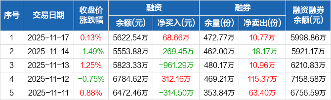 旅游ETF:融资净买入68.66万元,融资余额5622.54万元(11-17)