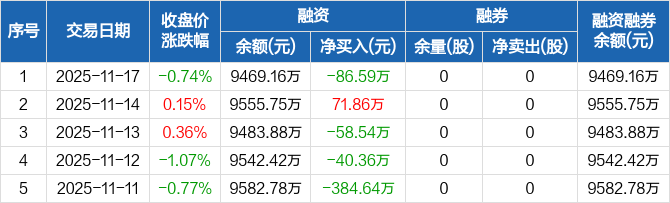 亚联机械:融资净偿还86.59万元,融资余额9469.16万元(11-17)