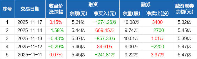 盾安环境:融资净偿还1274.26万元,融资余额5.31亿元(11-17)