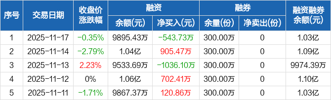创业50ETF:融资净偿还543.73万元,融资余额9895.43万元(11-17)