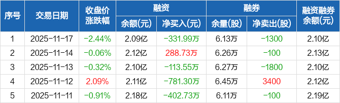 新宝股份:融资净偿还331.99万元,融资余额2.09亿元(11-17)