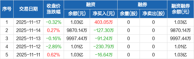 盛德鑫泰:融资净买入403.05万元,融资余额1.03亿元(11-17)