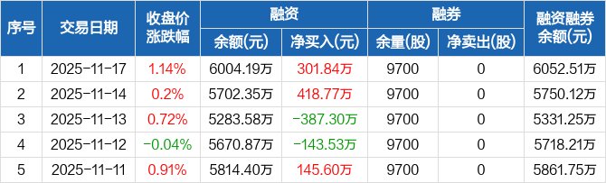 苏泊尔:融资净买入301.84万元,融资余额6004.19万元(11-17)