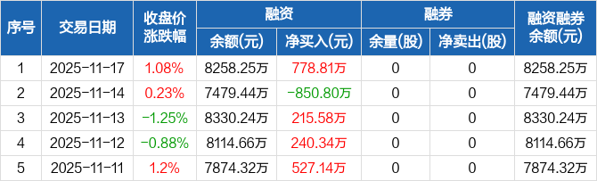 矩阵股份:融资净买入778.81万元,融资余额8258.25万元(11-17)