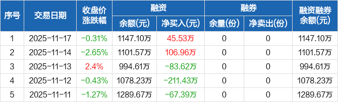 创业板ETF天弘:融资净买入45.53万元,融资余额1147.1万元(11-17)