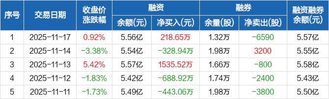 润建股份:融资净买入218.65万元,融资余额5.56亿元(11-17)