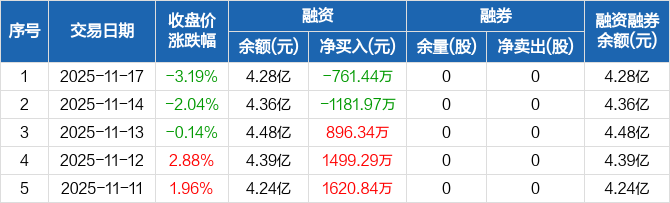 鸿日达:融资净偿还761.44万元,融资余额4.28亿元(11-17)