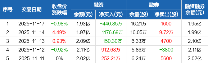 中集车辆融资融券信息显示,2025年11月17日融资净偿还440.85万元;融资余额1.93亿元,创近一年新低,较前一日下降2.23%。