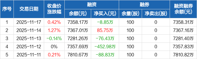建工修复融资融券信息显示,2025年11月17日融资净偿还8.85万元;融资余额7358.17万元,较前一日下降0.12%。