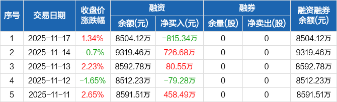 泰禾股份:融资净偿还815.34万元,融资余额8504.12万元(11-17)