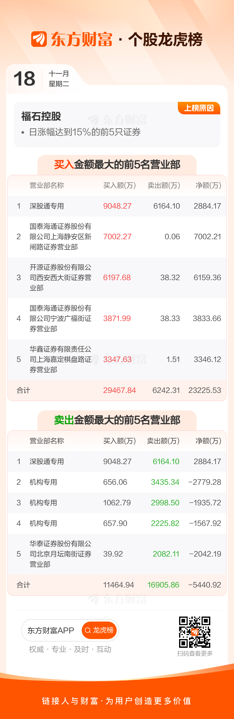 福石控股(300071)龙虎榜数据(11-18)