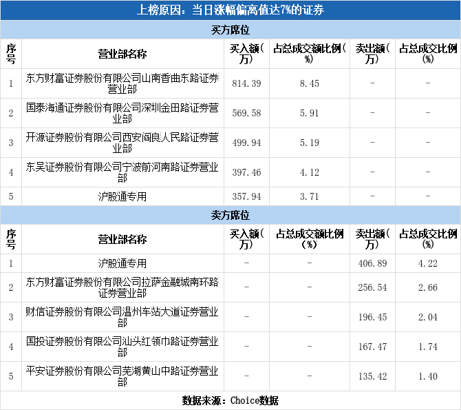 沪股通现身龙虎榜,太平鸟涨停(11-18)