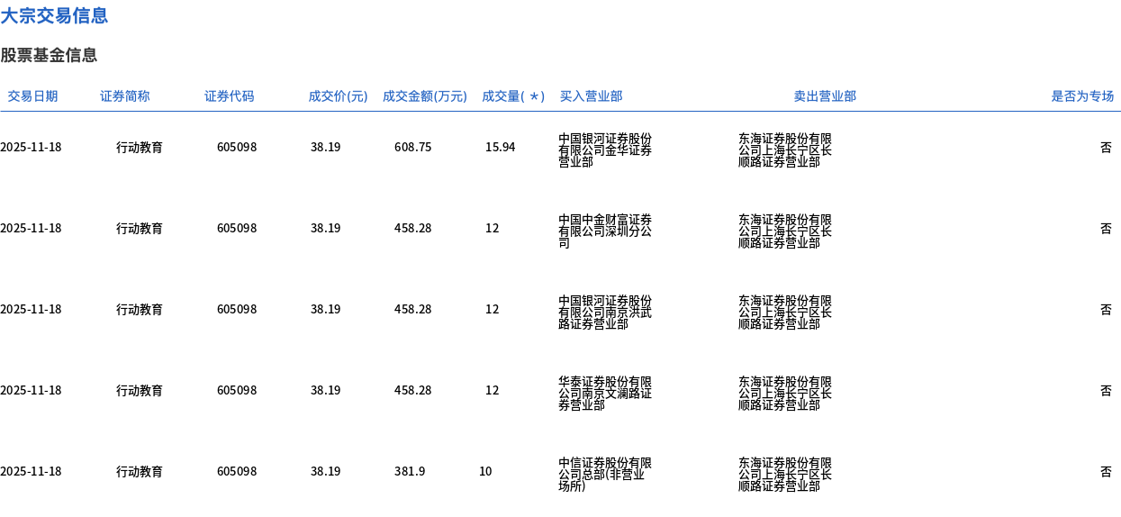 行动教育今日大宗交易折价成交133.6万股,成交额5102.19万元