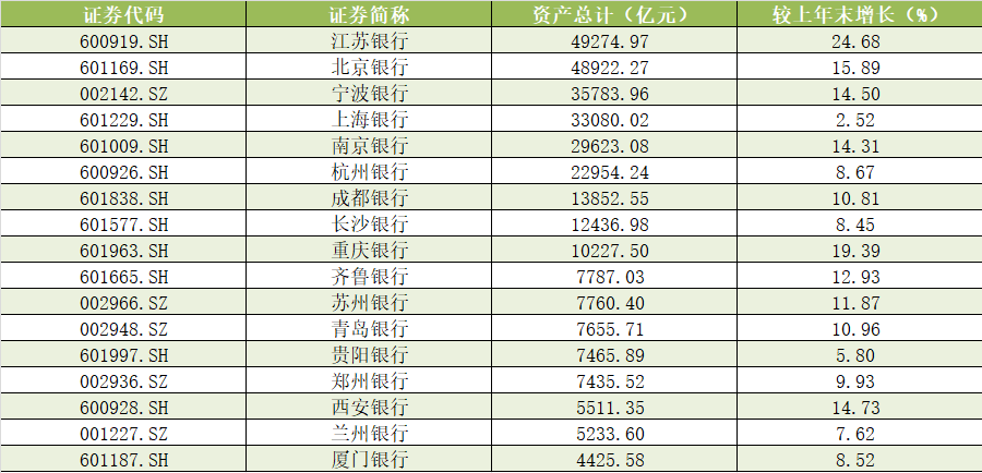 A股上市城商行截至2025年9月末资产规模数据来源:Wind