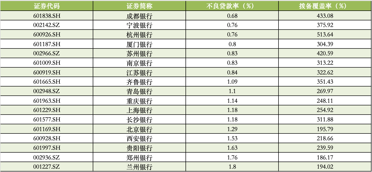 A股上市城商行截至2025年9月末资产质量指标数据来源:Wind