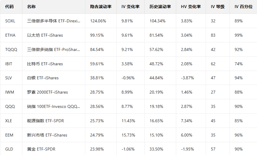 美股ETF引申波幅排行榜前十(标的要求:市值>100亿美元)