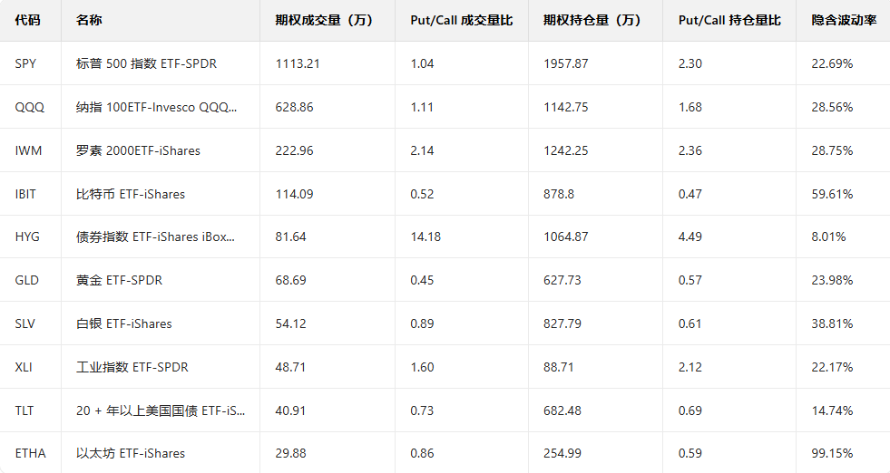 三、美股ETF期权成交榜美股ETF期权成交量排行榜前十
