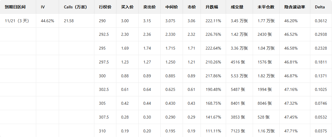 今日到期的纳斯达克100指数期权成交量分布:Call单峰值为25010,Put单峰值在24500点。
