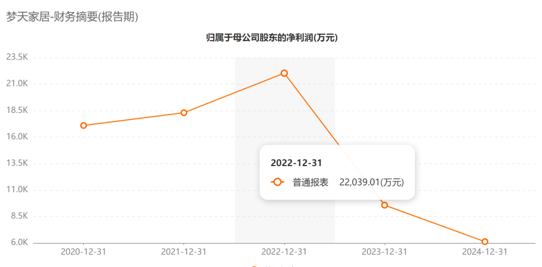 财务数据显示,梦天家居上市后业绩一路走低。2022年至2024年,公司营业收入从13.89亿元降至11.17亿元,归母净利润从2.20亿元降至0.61亿元。