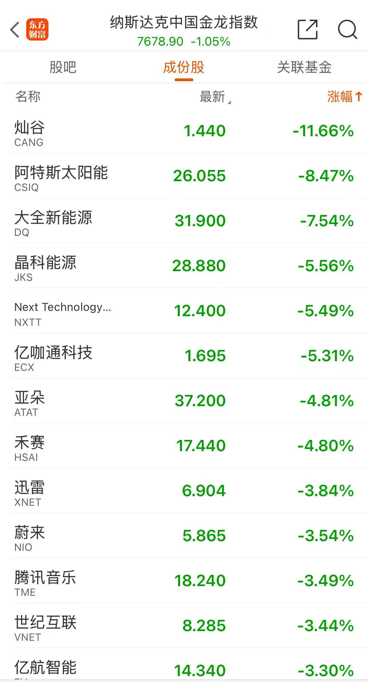 中国资产方面,中概股普跌,纳斯达克中国金龙指数跌1.05%。个股方面,晶科能源跌超5%,大全新能源跌超7%,亚朵跌超4%,迅雷跌超3%。