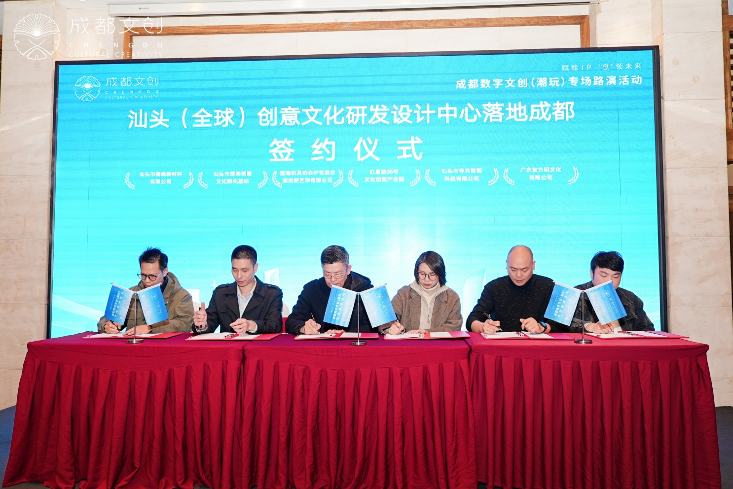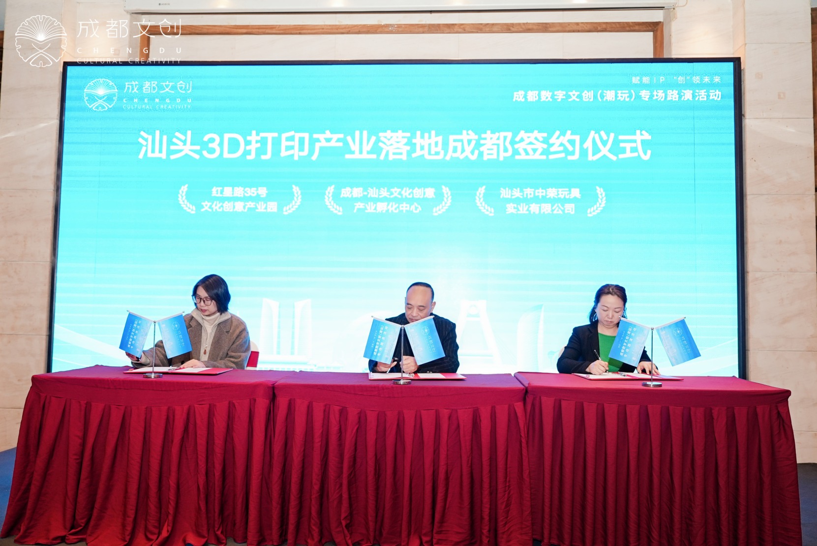 作为成都持续以潮玩为核,深化与沿海产业先发地区深化合作的一个重要载体,本次专场路演活动还重点举行了汕头(全球)创意文化研发设计中心落地成都签约仪式以及汕头3D打印产业落地成都签约仪式。