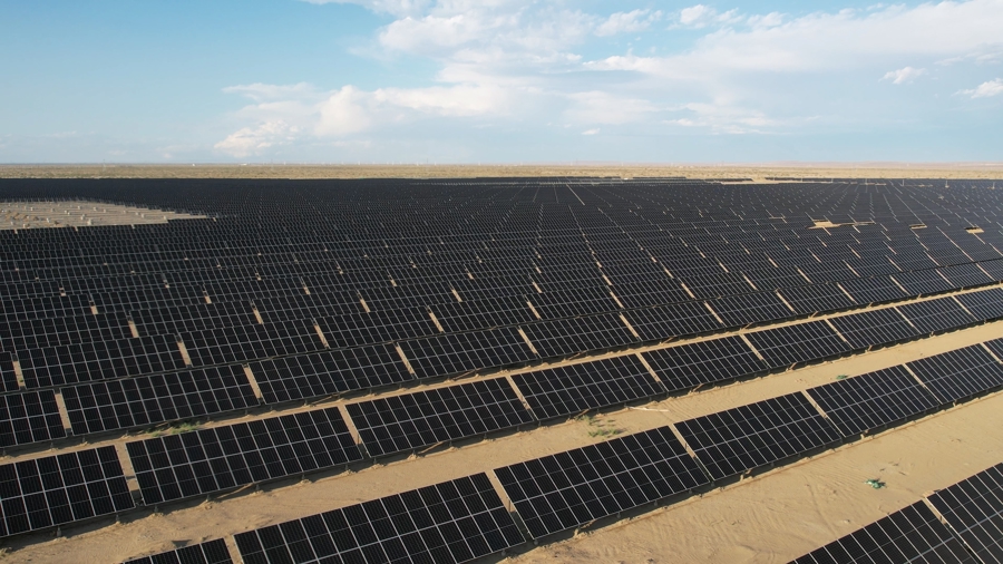 申能新疆塔城和布克赛尔县200万千瓦光伏项目现场。