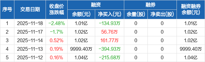 英科再生:融资净偿还134.93万元,融资余额1.01亿元(11-18)