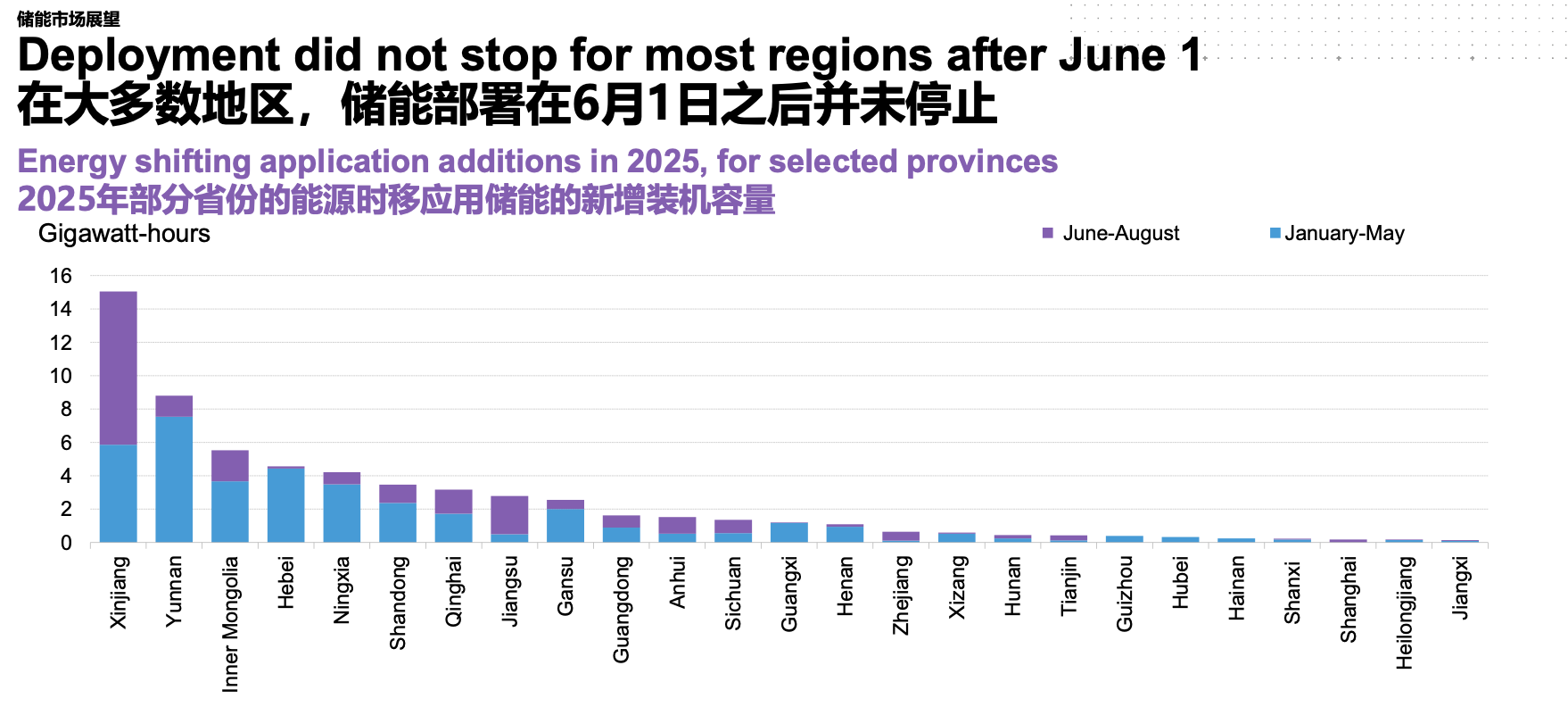 该机构列出的表格中可以看到,在6-8月,新疆、江苏、内蒙古、青海等省份仍有较大的新增储能装机容量。